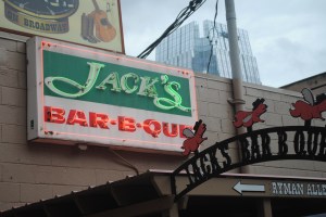 Once we checked into our hotel, we were off to find some food and some nightlife (by this time, it was already six in the evening, and that’s nightlife for us).  As you must do when going to Nashville, we started our vacation with barbecue, Katie getting a brisket sandwich and me having the pulled pork.  It was delicious.  Then we trolled Broadway Street.  Nashville has a fun and lively night scene, but I have to admit, we were a little disappointed in what we found.  Being the live-music lovers we are, we had high hopes for finding a smoky honky-tonk where we could grab a few drinks and enjoy the sounds of some local band performing their awesome and original songs.  Maybe we could even find a few new bands to follow.  After all, it is Music City USA, right?  (Excuse me for one second while I climb up on this soap box here)  Instead, what we found (just like back home), was bar after bar filled with cover bands playing the same Hank Williams and Allman Brothers songs.  This is because the art of live music might not be completely dead, but it is definitely in hospice, barely being kept alive by the few adventurous souls who would rather take a chance and spend their money checking out someone who actually creates something instead of supporting Tainted Love or some other shitty cover band who will play them the twenty or thirty safe and familiar songs from the billboards of yesteryear.  And now I’ll shut my mouth before I alienate myself from everyone I know.  To make a short story long, we heard a lot of good sounding music in Nashville, but it wasn’t anything that we couldn’t have heard tuning into a 60s rock radio station.